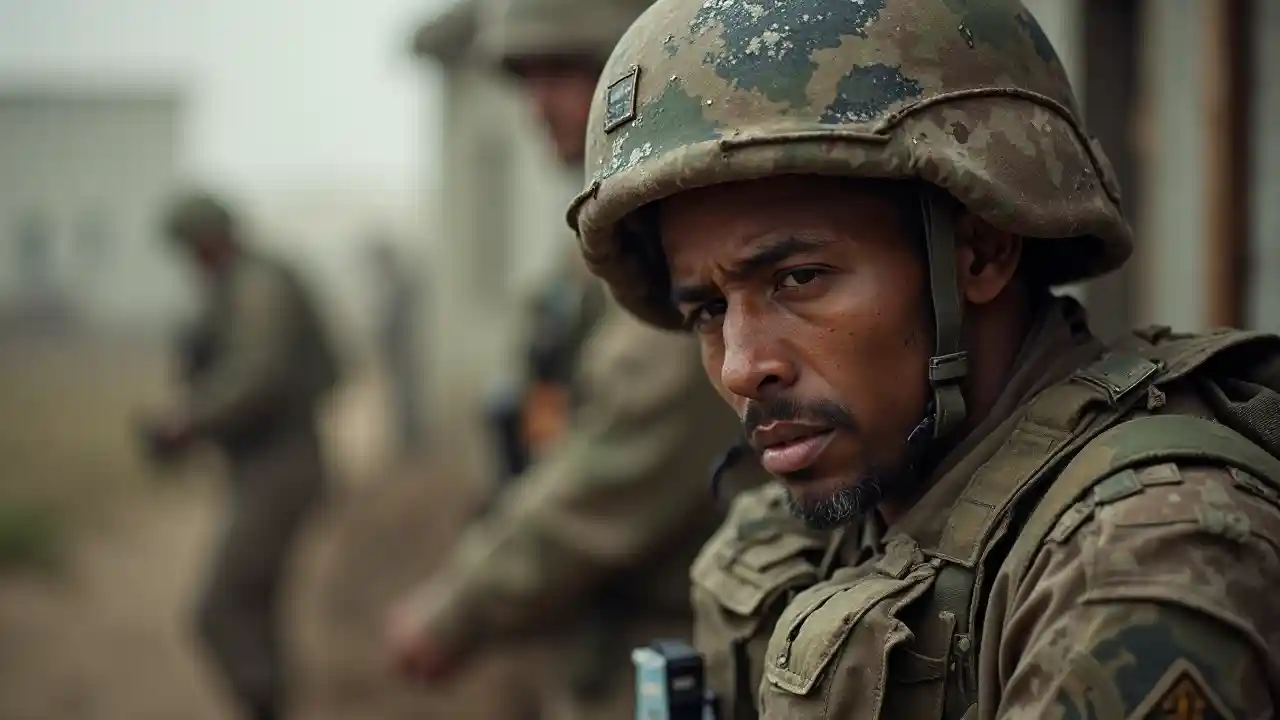 En traumatiseret soldat i en krigszone.