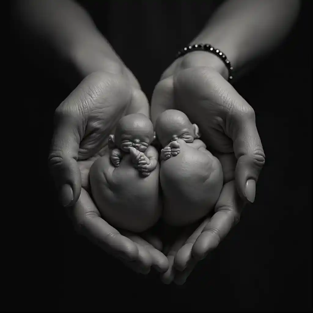 Ultralydsbilleder af tvillinger, der holder i hånden