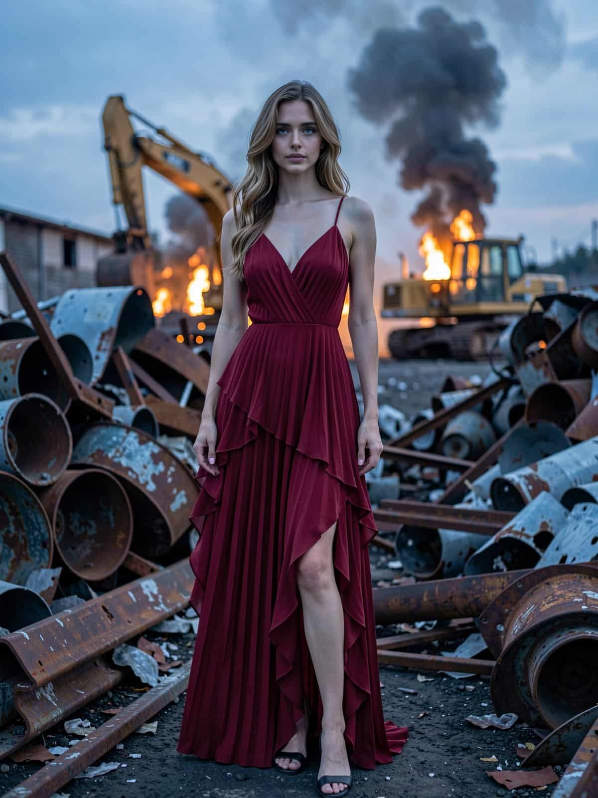 Wählen Sie einen Industriegebietsfilter. KI erzeugt automatisch einen harten Hintergrund mit Metallschrott, Maschinen und Lagerelementen.