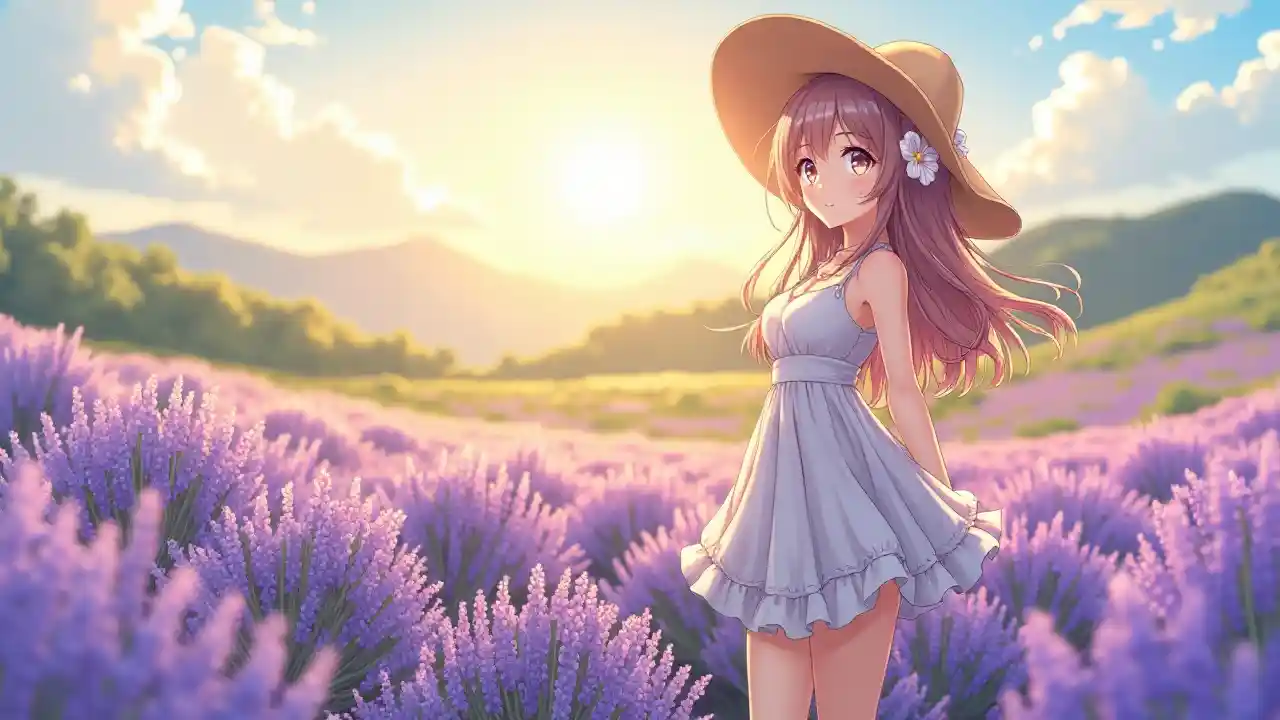 Ultra-High-Definition-Anime-Mädchen im Lavendelgras