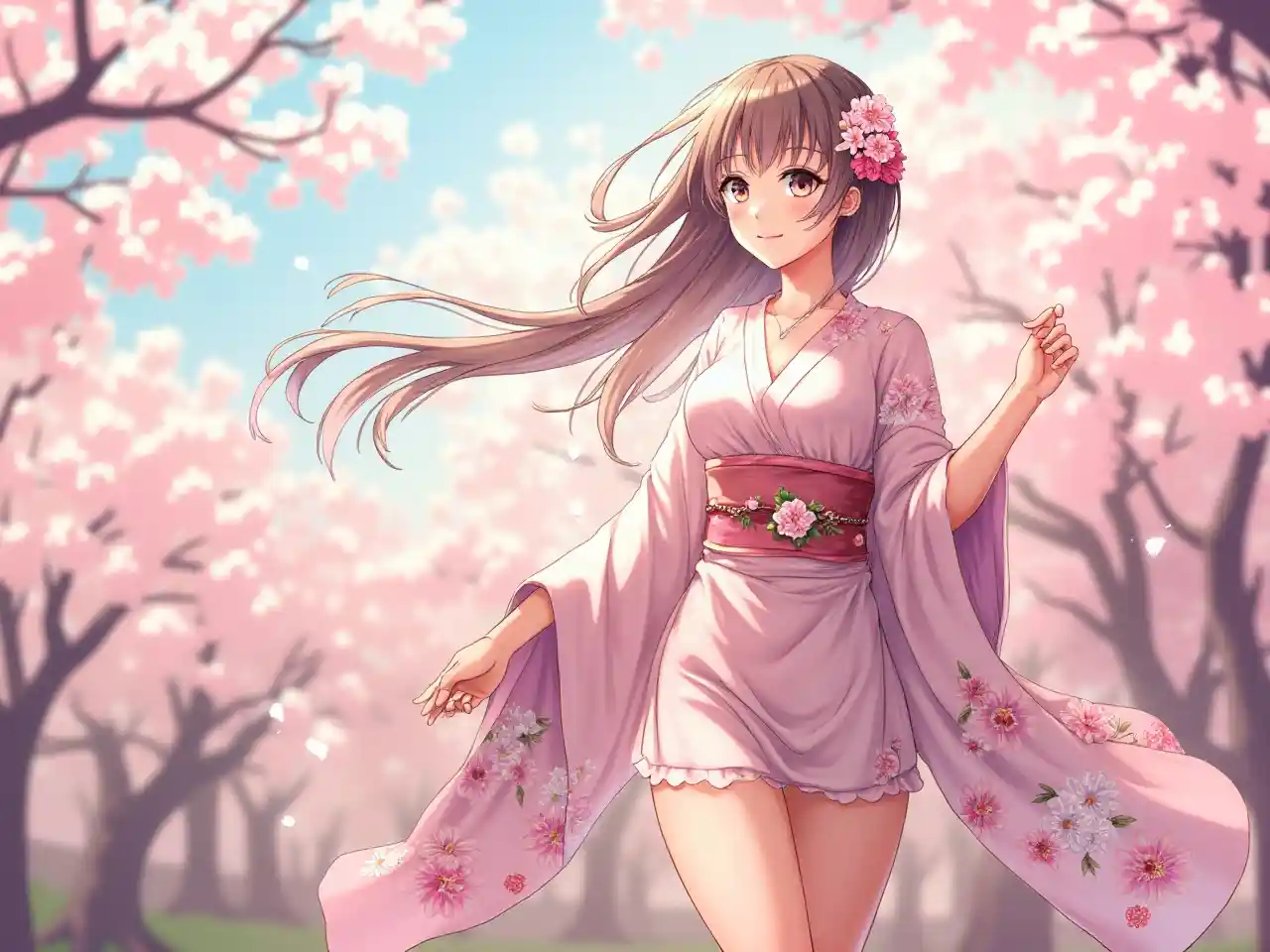 Das Ultra-HD-Anime-Mädchen im Kirschgarten