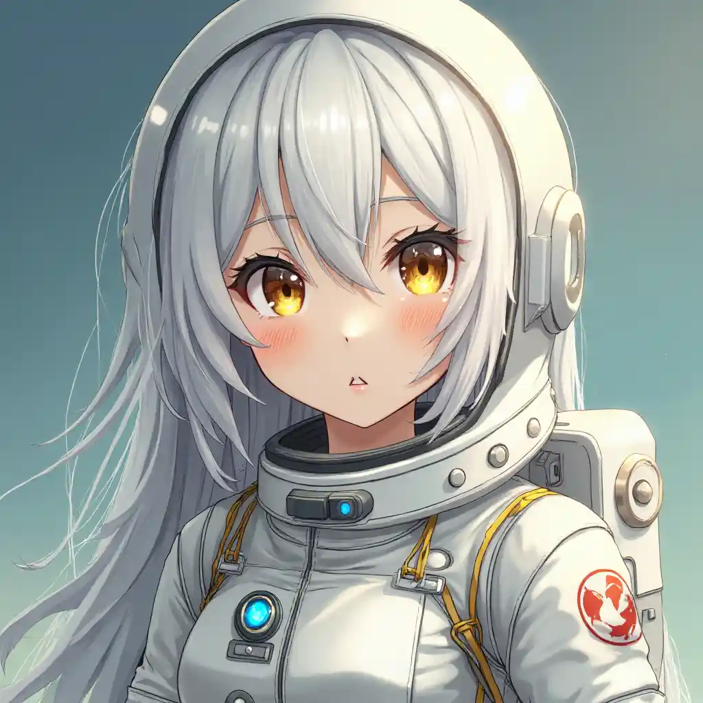 Anime-Mädchen im Astronautenanzug mit grauen Haaren