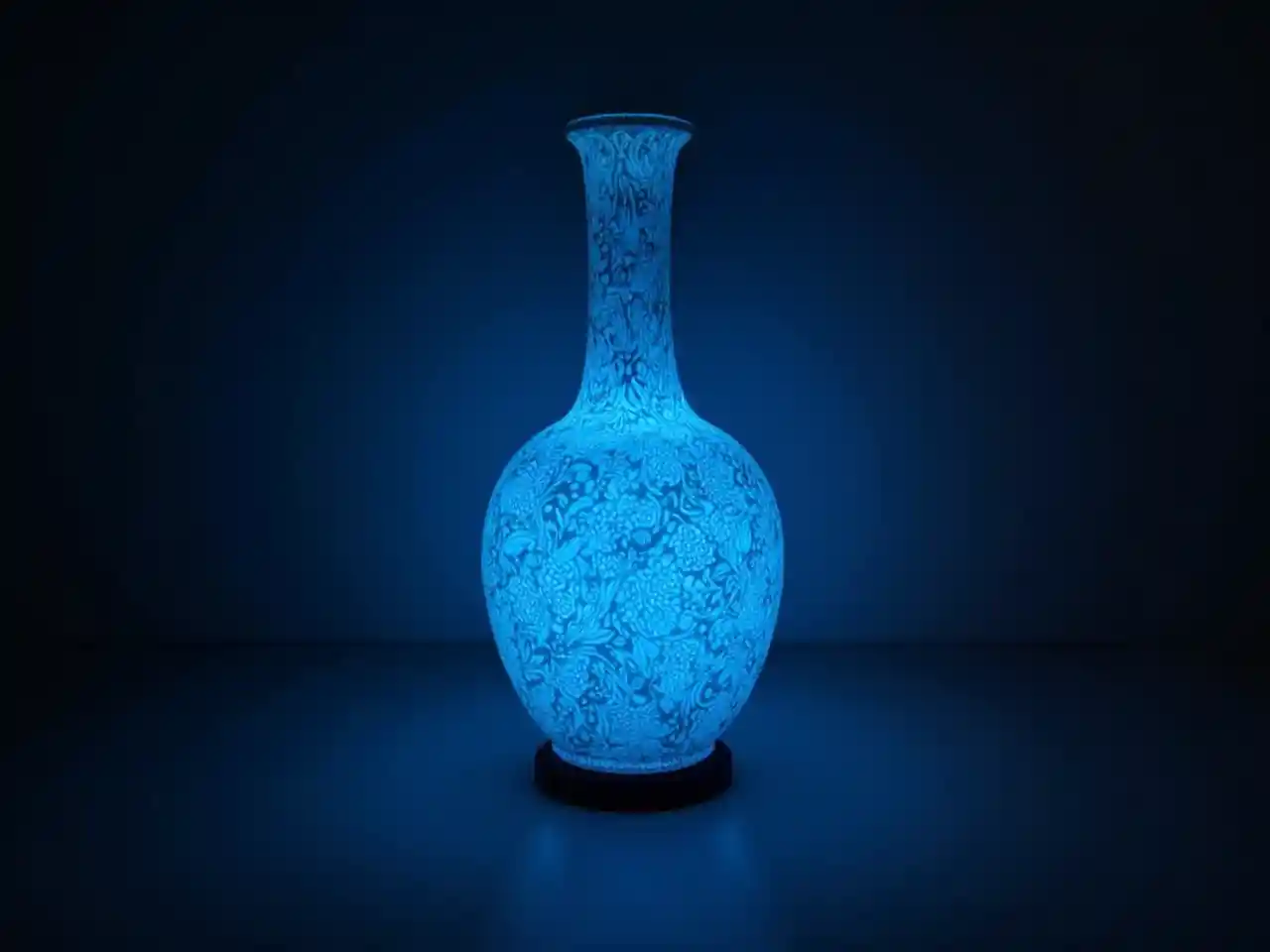 Atemberaubende Art-Deco-Vasen leuchten in dramatischem Blaulicht