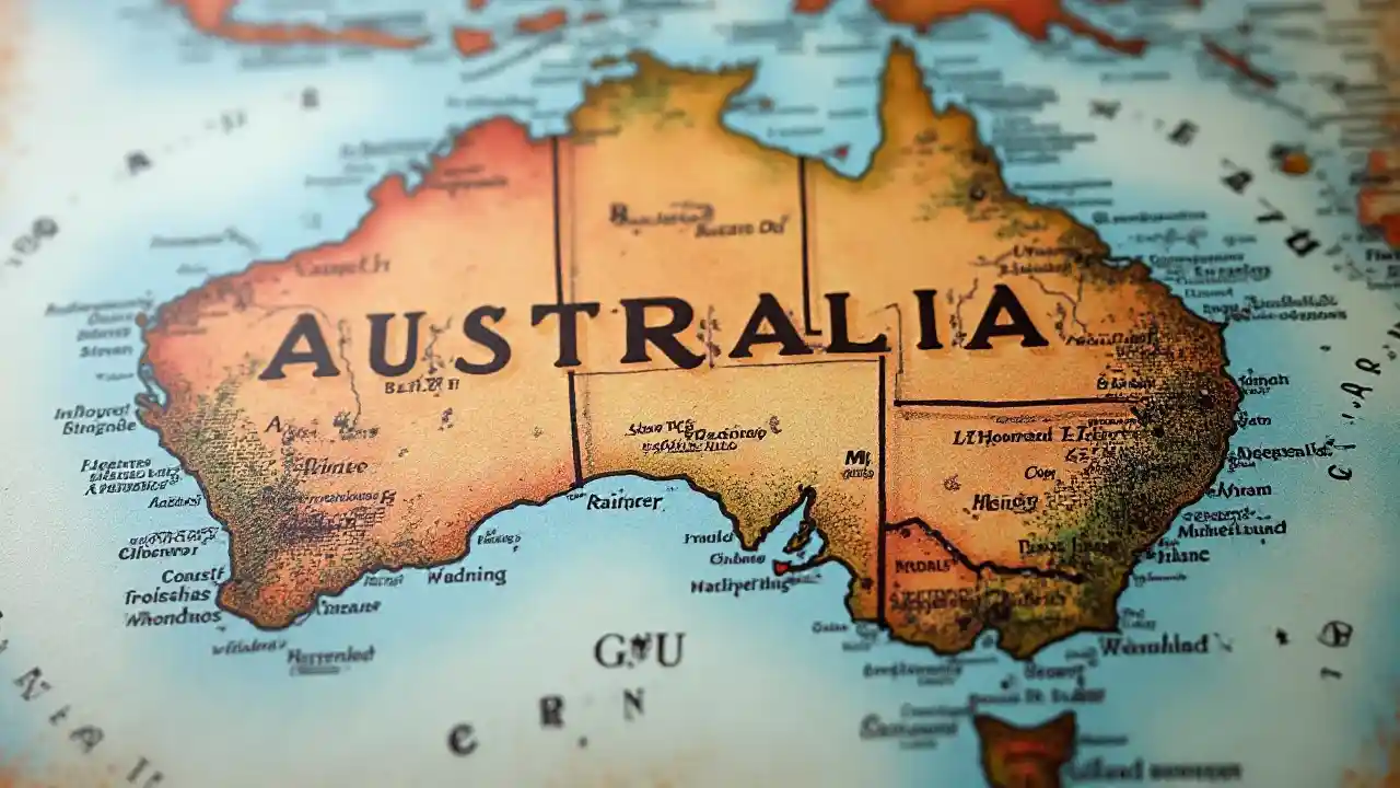 HudsonAuffällig werden farbige Fotos der australischen Gravur Karte mit der Aufschrift "Australien" gezeigt.