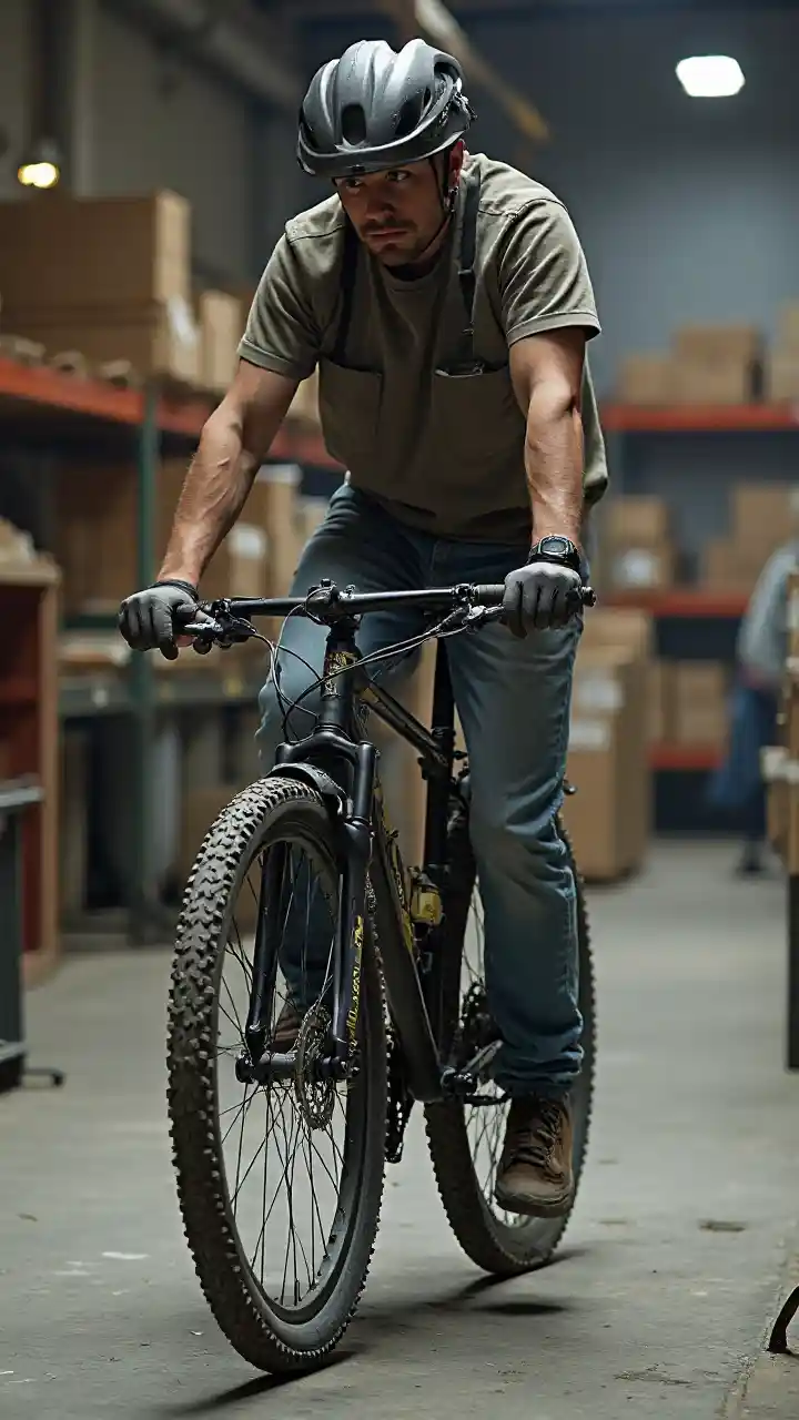 un azienda metalmeccanica dove impiegati e meccanici si recano a lavoro in bici. sono felici e parcheggiano la bici nel parcheggio azineedale。Fra i lavoratori ci sono donne e uomini in ugual numero
