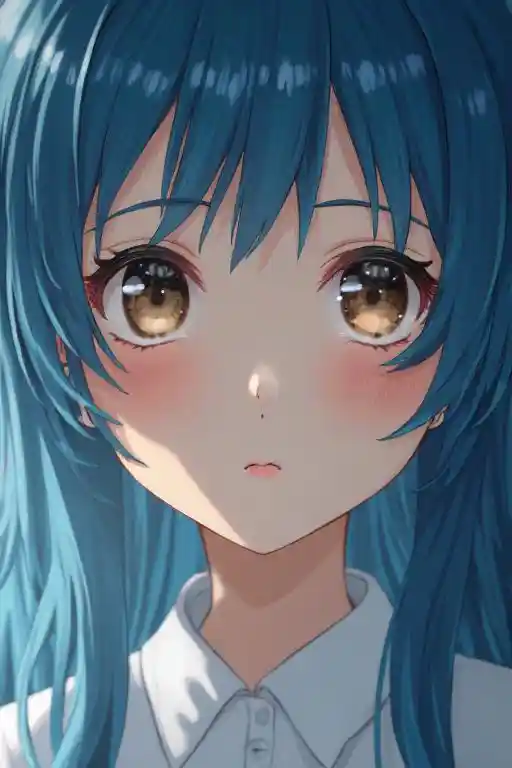 Hochauflösendes 8K-Mädchen-Meisterwerk mit blauen Haaren