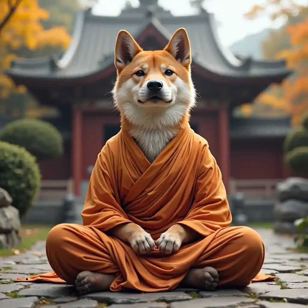 Shiba Inu übt Meditation als buddhistischer Mönch