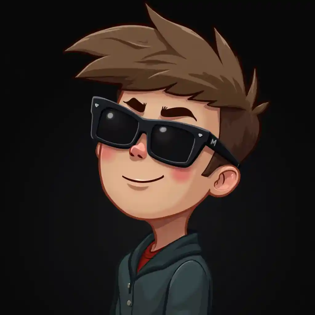 Cartoon-Figur mit schwarzer Sonnenbrille auf schwarzem Hintergrund