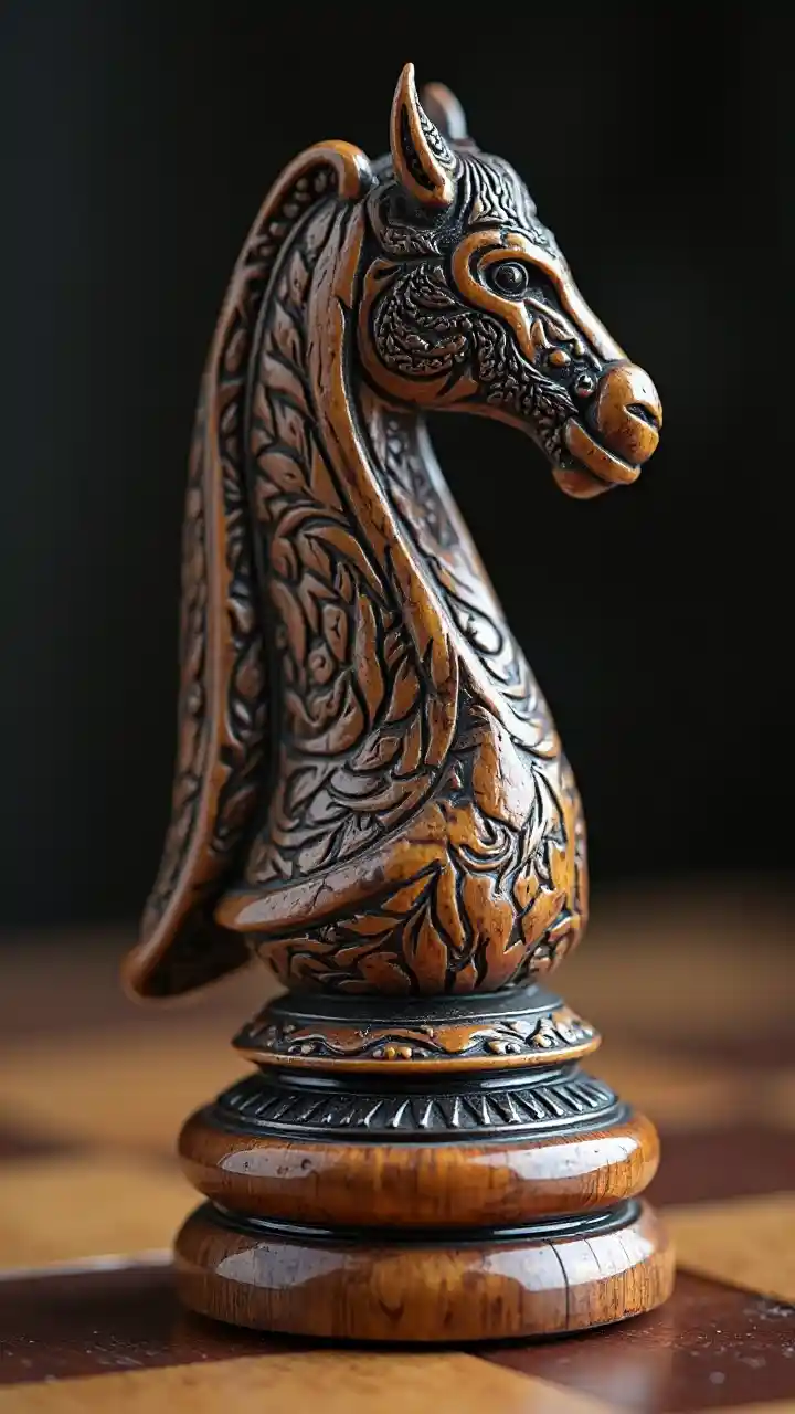 Schachfiguren, Ritter, elegant geschnitztes Holz Fusion filigranes Metalldesign, stilvoll