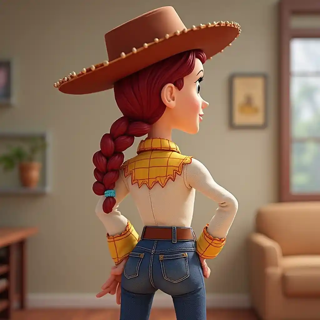 Cowgirl Jesse, aus der Spielzeuggeschichte, mit den Händen auf dem Rücken