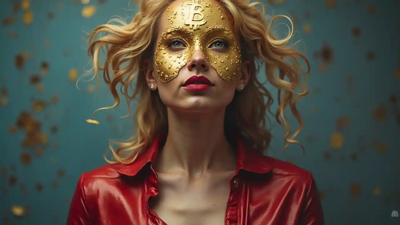 Weibliche Superheldin mit Bitcoin-Kopf