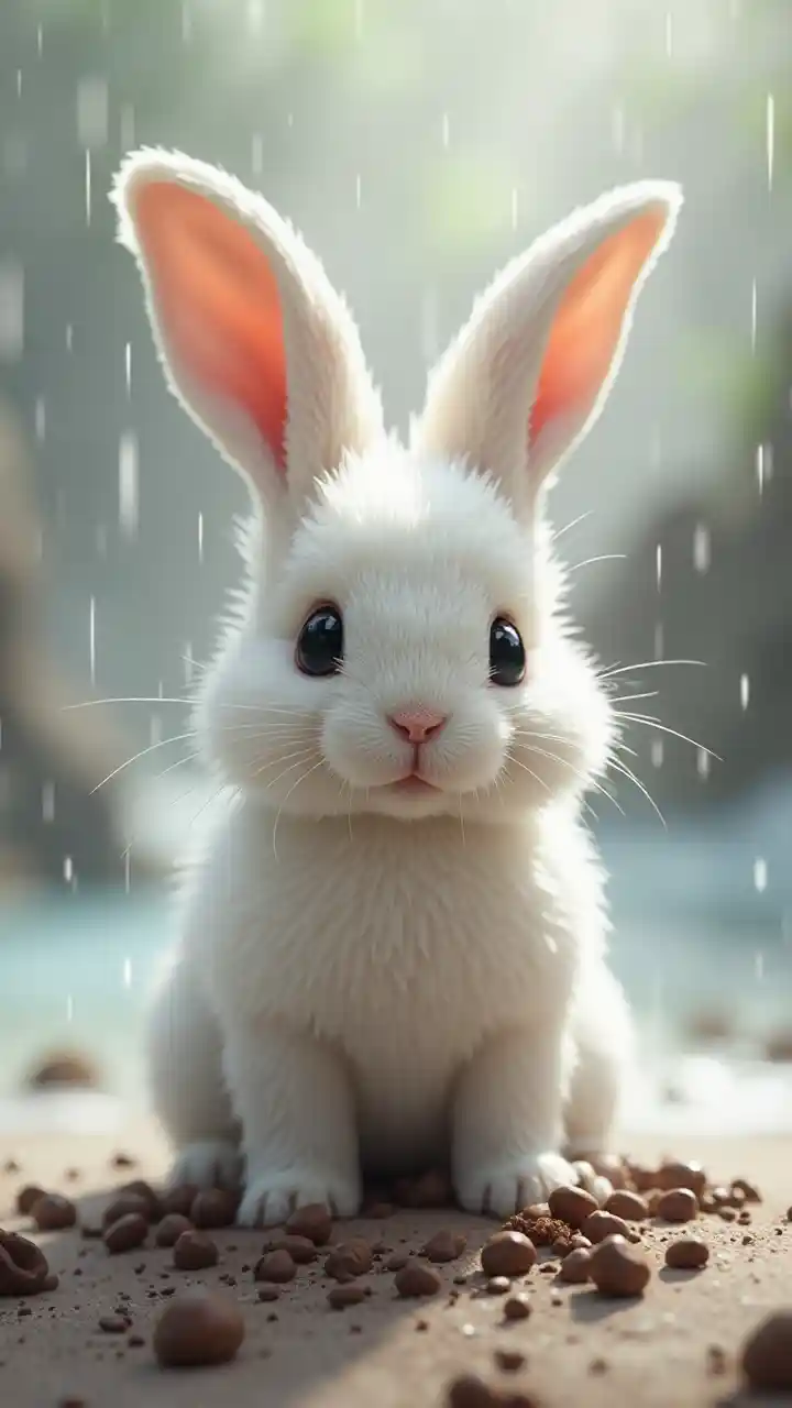 Ein putziger, weißer Hase auf der Insel, da regnet es milkChocolate