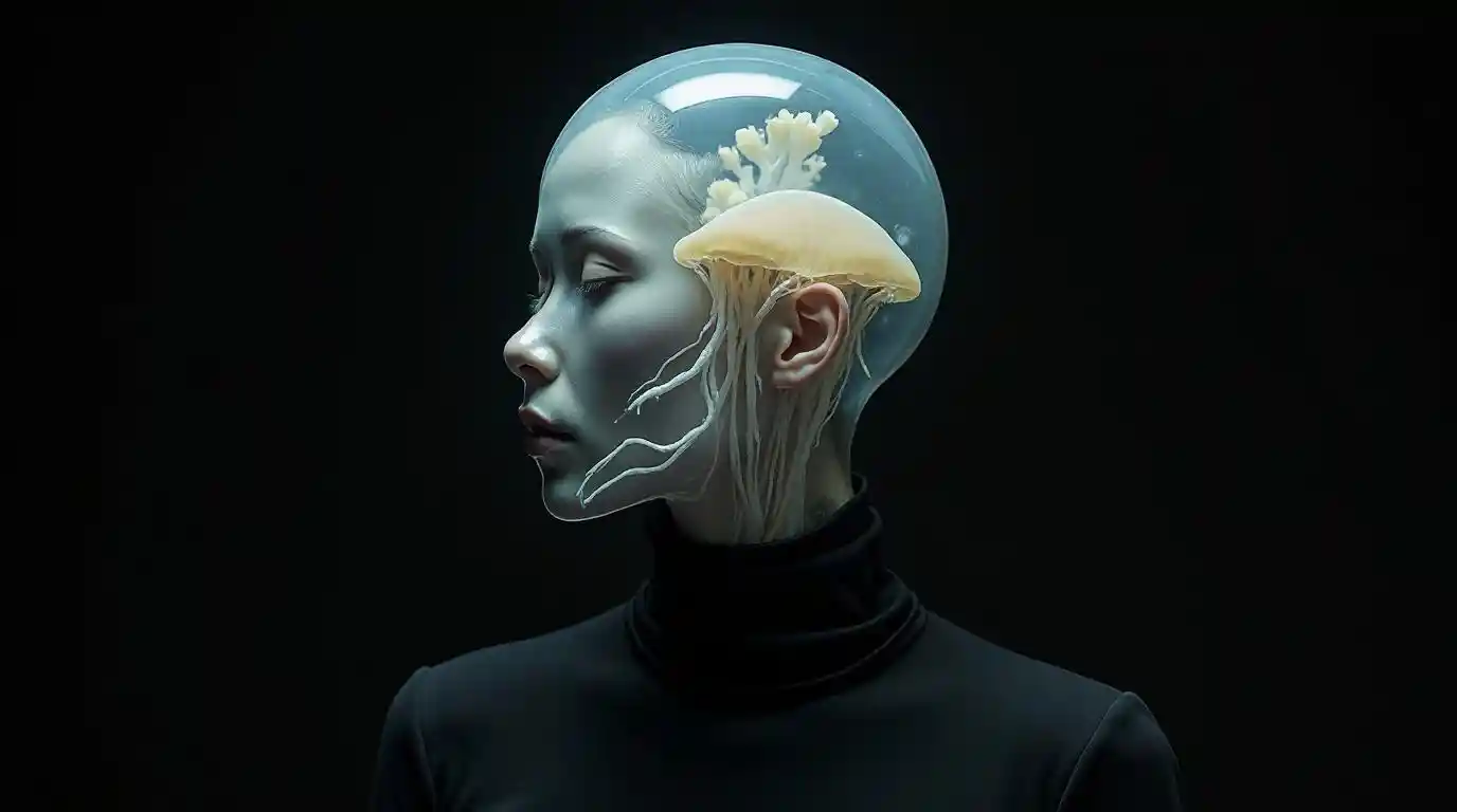 Halbdurchsichtige und halbmechanische Quallen-Gehirne Surreale Mode