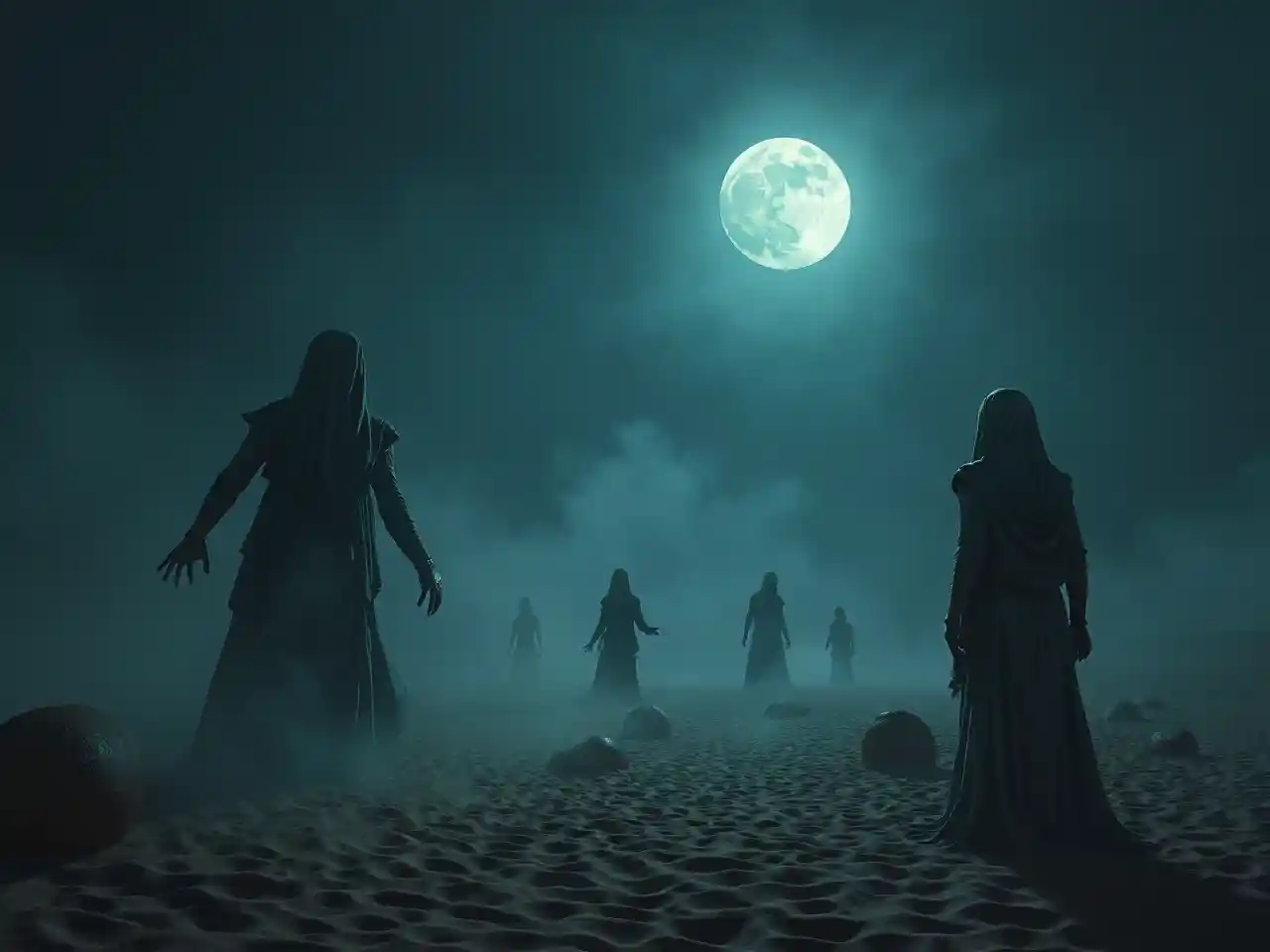 Geheimnisvolle Kreaturen in dunklen Wüstenlandschaften