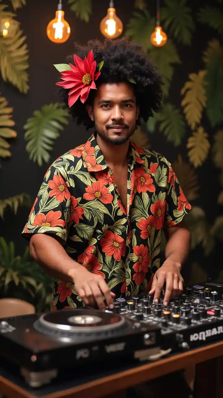 GraysonDJs in Tiki/Bali-Themen-Outfits mit moderner Note