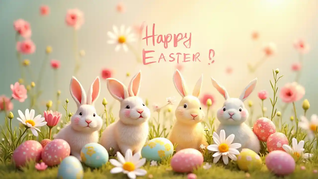 Fröhliche Osterkarten, fröhlicher Werbestil, lebendige Frühlingsmotive, warme Farben, leuchtende Pastelltöne, verspielte Kaninchen und bunte Eier, festliche Blumenelemente, glatt poliertes Design, auffällige Layouts, attraktive Atmosphäre, belebende Atmosphäre, komfortable Kulisse, weiche Texturen, hohe Qualität, ultradetailliert, mit dem Ziel, beim Publikum emotionale Resonanz zu wecken.