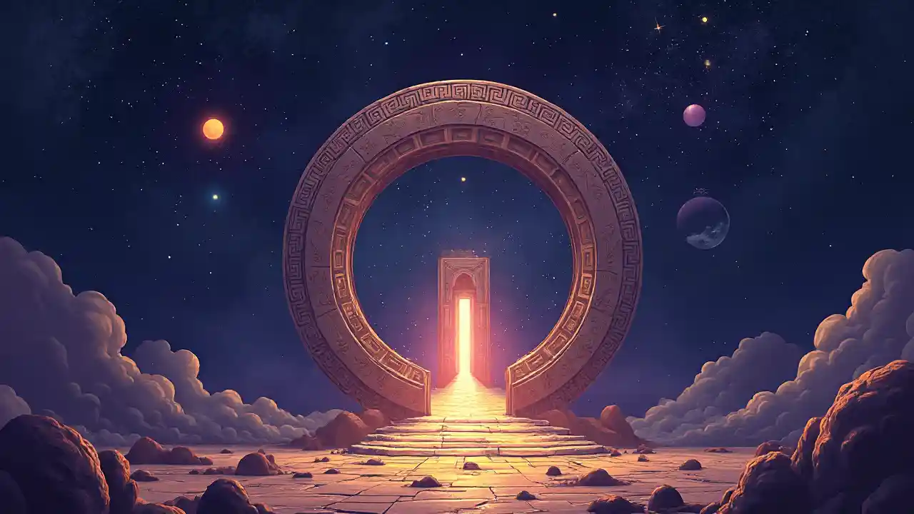 Mystisches Tor zur Ewigkeit in Weltraum-Illustrationen