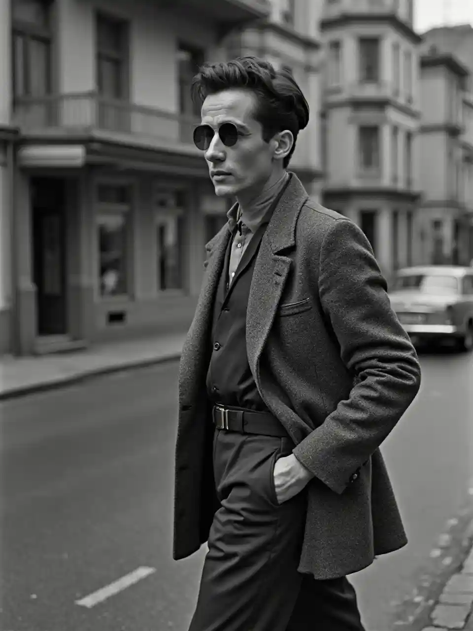 Extrem detaillierte fotografische Bilder, körnige Bilder, schön komponierte, monochromatische Bilder, Modebilder der 50er Jahre, Modemagazin-Fotografie, Leica Summicron 35mm f2.0, Kodak 400tx, Modefotografie, Modemodelle, William S. Burroughs verkleidet als Rock 'n' Roll