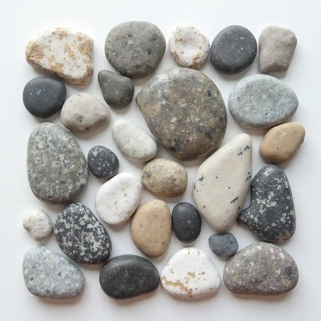GraysonComposici ó n de piedras de cantera de diferentes tama ñ os y formas,flotando con fondo blanco