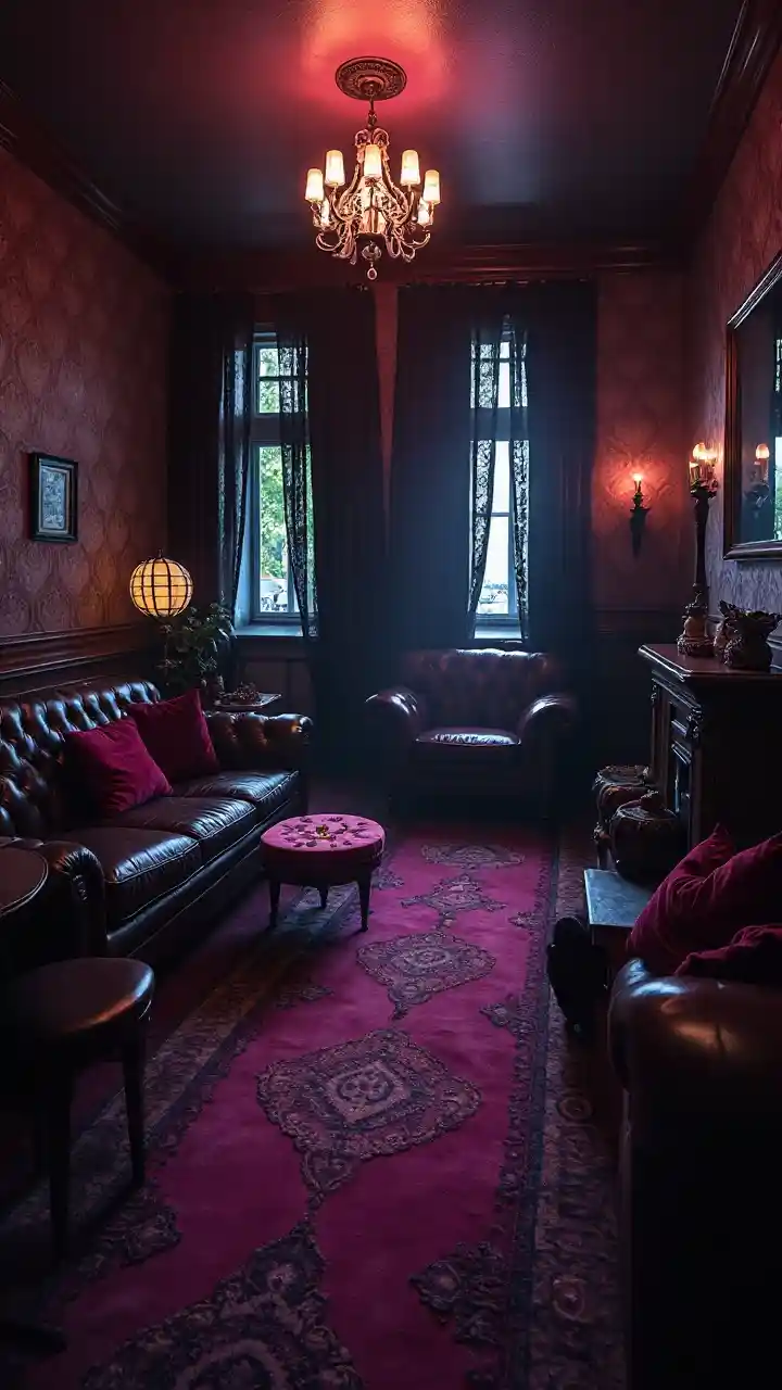 Entdecken Sie die ausgedehnte Gothic-Themenlounge des Habbo Hotels
