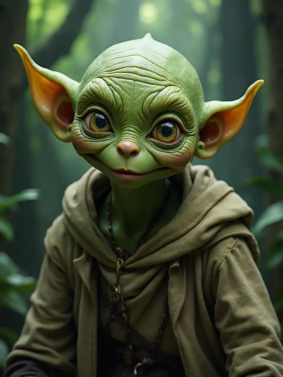 MiaTiago Hoisels Green Gollum Sméagol mit Schönheitskönigin, gruselige Kulisse, Schärfentiefe, unglaublich hohe Details