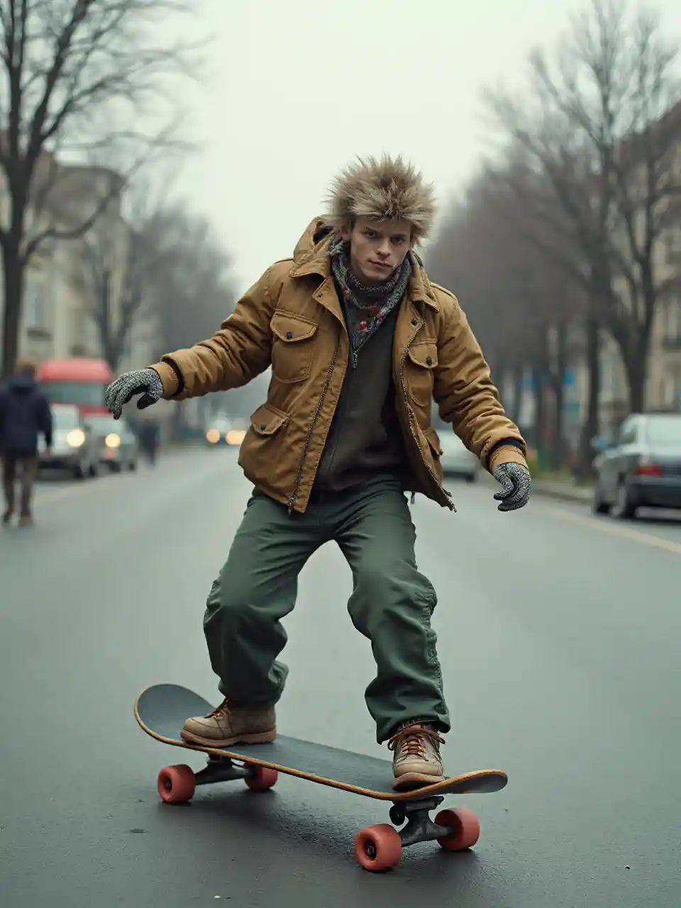 CamilaLeica Porträt eines kleinen Monsters Skateboard, codierte Muster, spärliche Einfachheit, uHD-Bilder, urbancore, sovietwave, Momentaufnahmen
