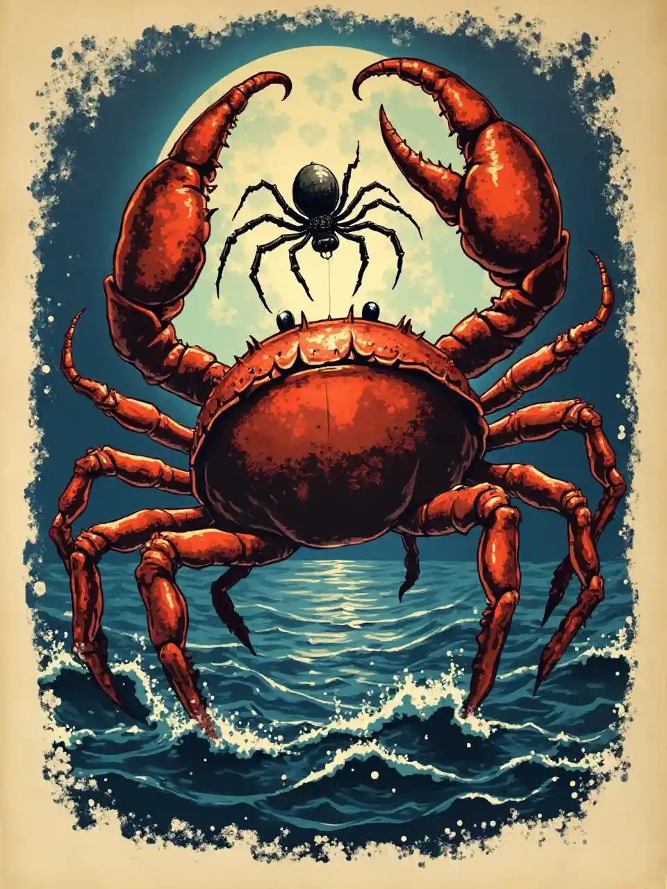 EmmaB-Movie Horror Halloween T-Shirt-Druckdesign aus den 1950er Jahren mit riesigen Krabben und schwarzen Witwen Spinnen, Spinnennetzen, Ozeanen, Spinneneiern