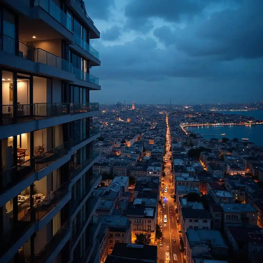 Stadtansichtsaufnahmen bei Nacht in einem Wohnhochhaus in Istanbul