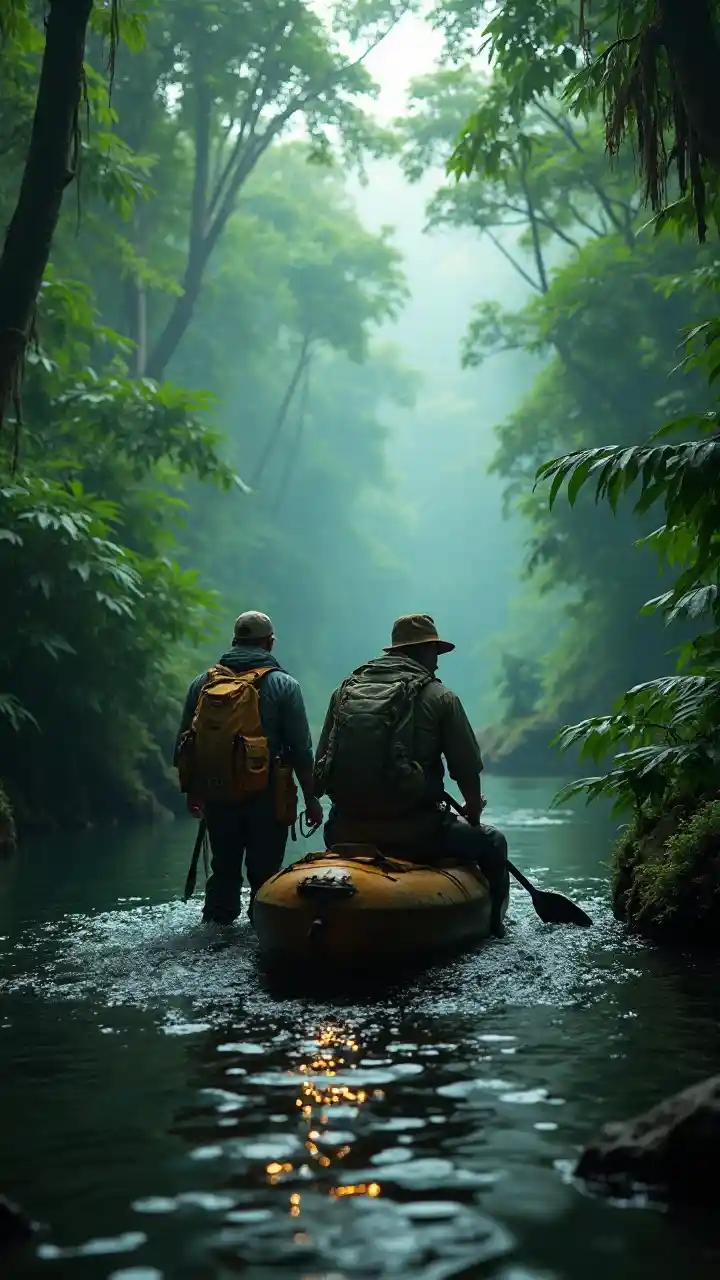Abenteurer und Gefährte segeln im Dschungel von Arnacke Island auf der Suche nach Schätzen