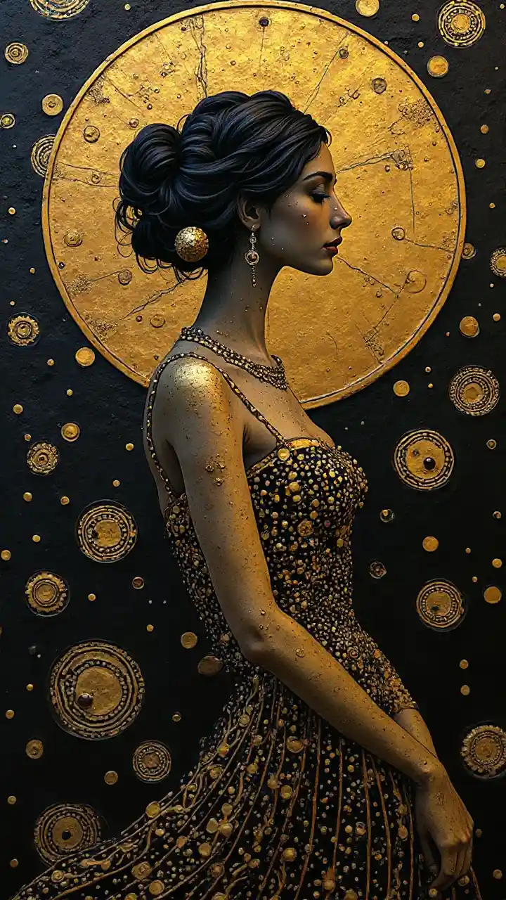 JulianGustav klimt Jugendstil Mischung aus modernen Elementen Einzigartiges Design Greift Design Original High Detail Schwarz und Gold Texturiertes Bild