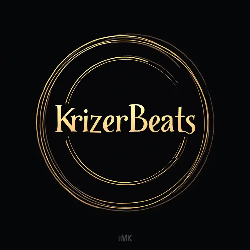 Una visi ó n clara de un logo circular elaborado con detalles finos en blanco sobre un fundo negro mate profundo,resaltando un centro vibrante con la leyenda‘KrizerBeats’escrito con un caracter í stico color dorado uniforme y brillante,destacando la esencia musical en un dise ñ o armonioso,with elementos limpios y sin distracciones,enfocus á ndose en la elegancia y sofisticaci ó n de la letra y el simbolismo del c í rculo perfecto