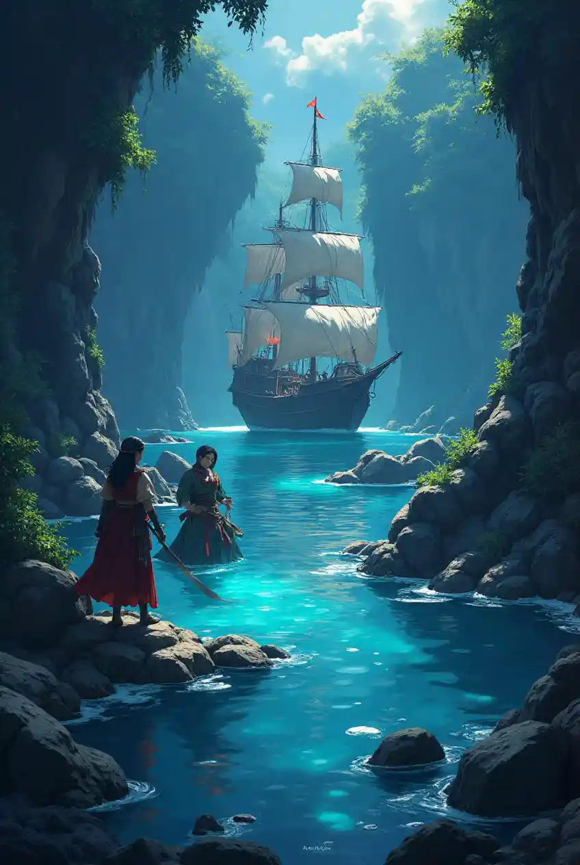 Die abgelegene Bucht, das magische Artefakt des Piratenhandels, schwingt mit abenteuerlichen Animationsthemen mit.
