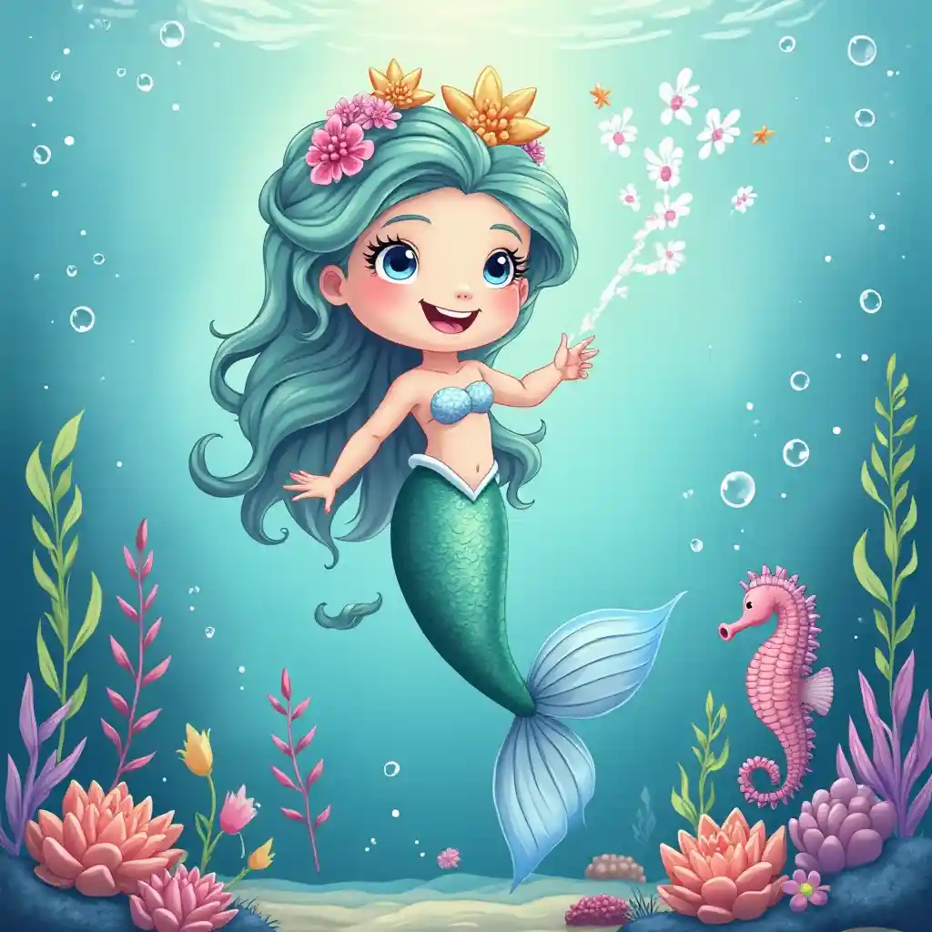 PenelopeErstellen Sie Einladungen zu Unterwasserthemen für das 5-jährige Geburtstagsmädchen, darunter Meerjungfrauen, Seepferdchen und Delfine