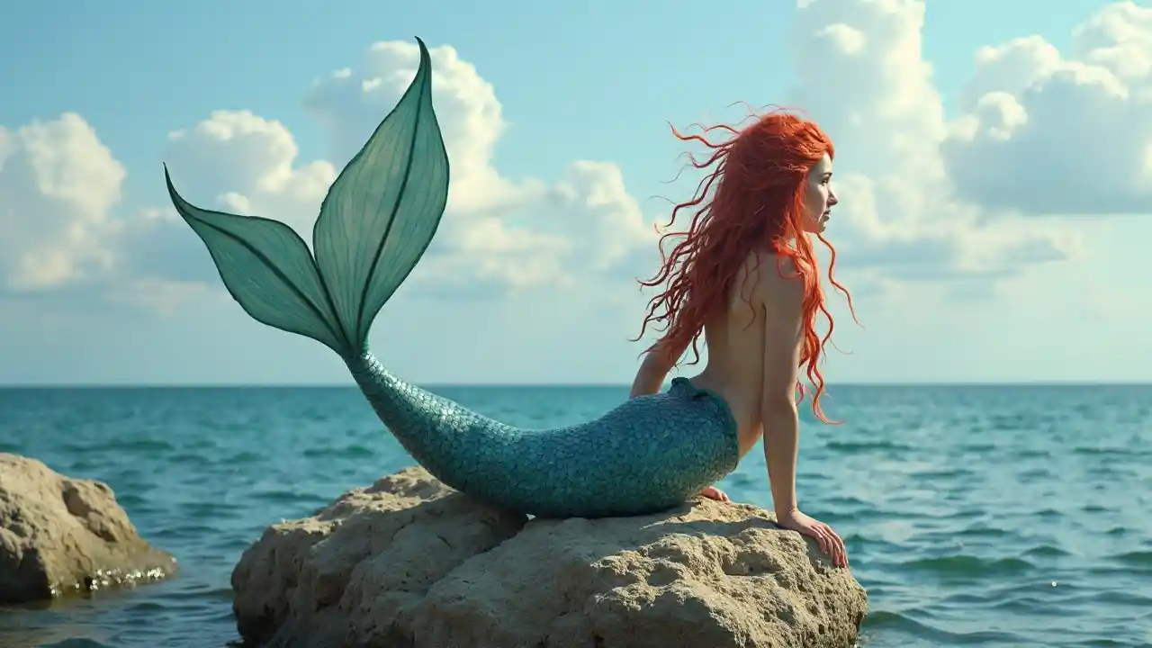 Meerjungfrau, langer Schwanz, rotes Haar, Shangyan Haitian Hintergrund