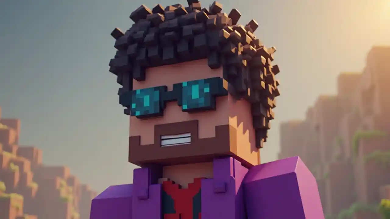 Trendige "Minecraft" -Figur mit afrikanischer Brille und Sonnenbrille