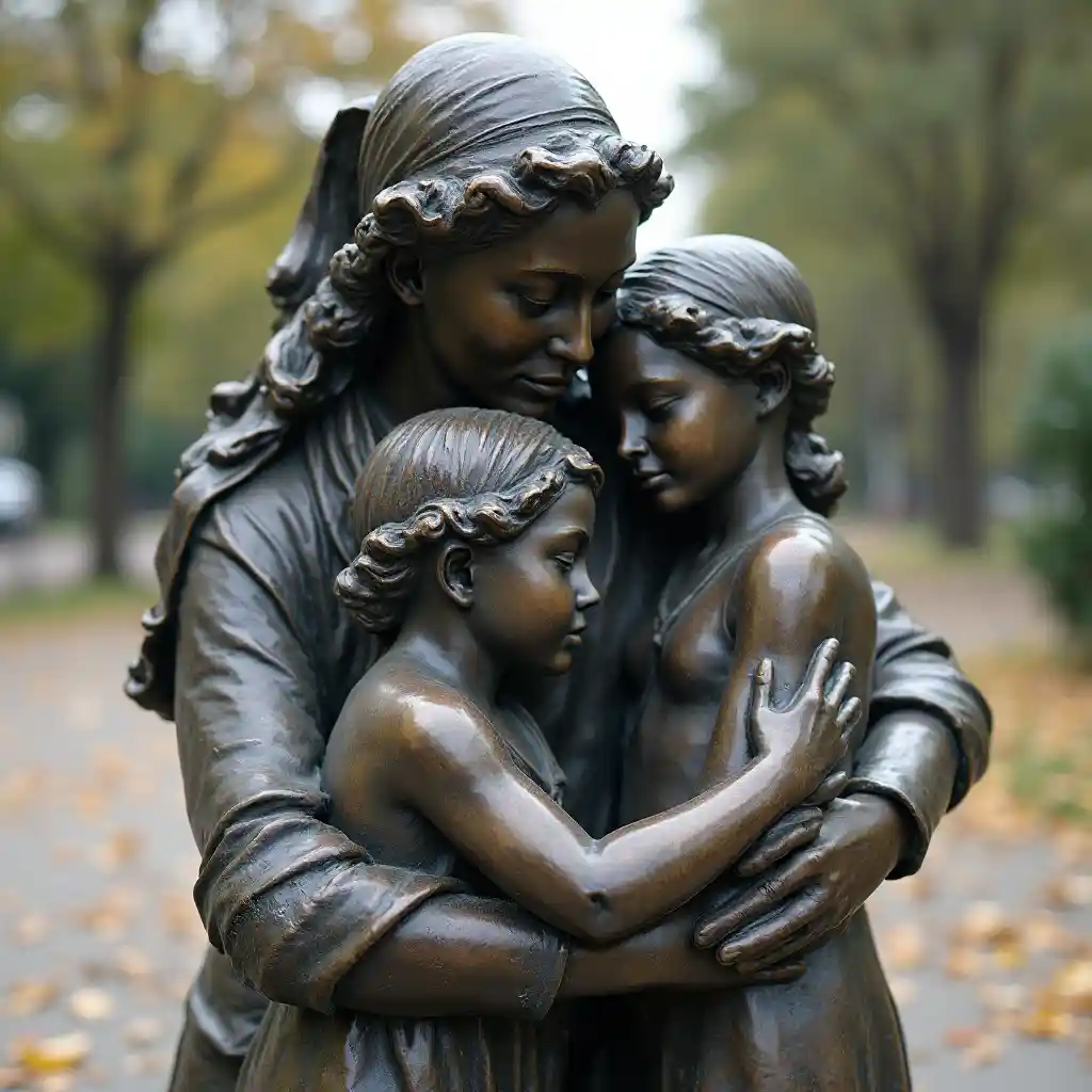 Kuschelliebe: Bronzefigur einer Mutter und ihres Kindes