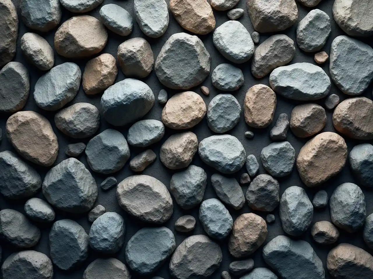 Steinstruktur, Muster, Hintergrund, obere Ansicht, organische Textur, nahtlose Textur, verstreuter Stein, graue und braune Farben, dunkle Farben, kontrastierende Beleuchtung, voluminöser Stein, Stein übereinander gestapelt, dicht gestapelter Stein