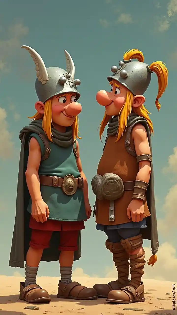 Asterix und Obelix im Pixar-Stil mit gallischem Helm