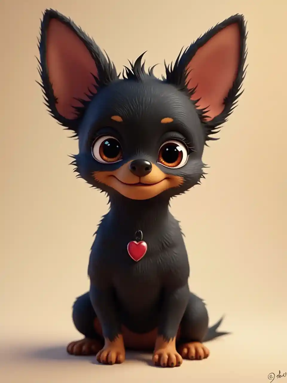 Kuscheliger schwarzer Chihuahua im Pixar-Stil