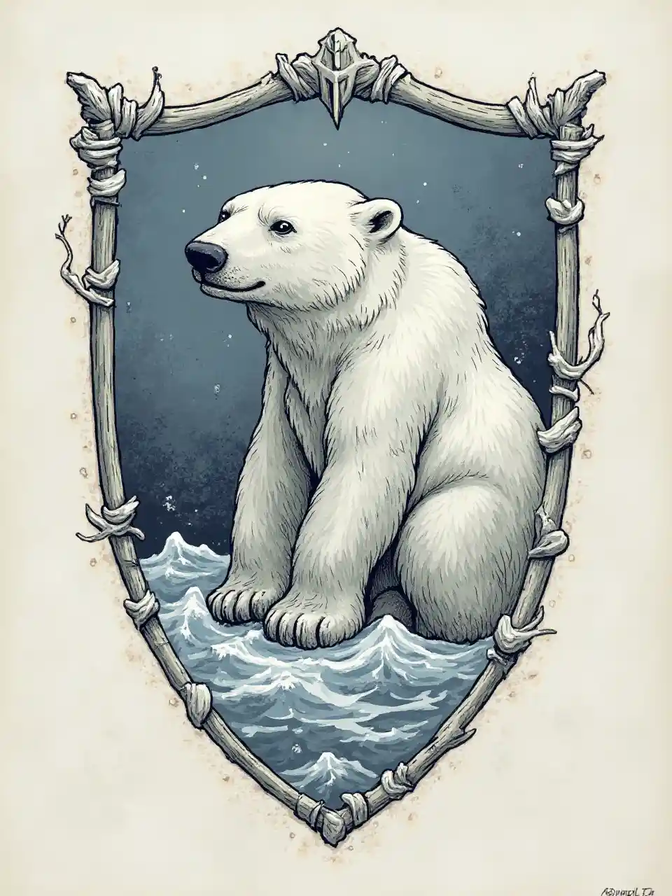 Harry Potter sigile/crest for polar bear named glacious → make the polar bear (powerfull) in the sheild and the name under → make the writing (glacious) is clear