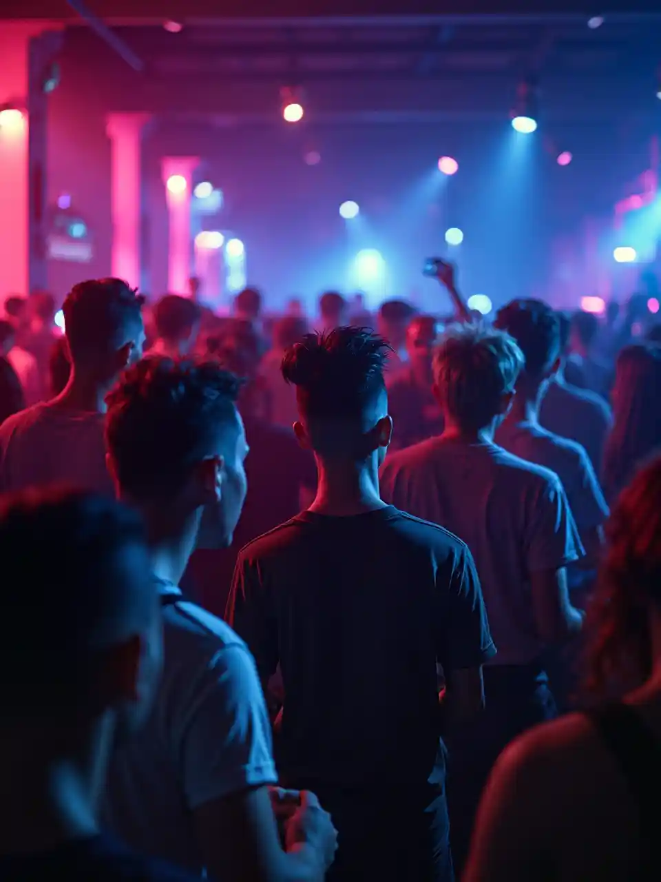 Energetische Punkfrisuren in der Clubszene mit Neonbeleuchtung