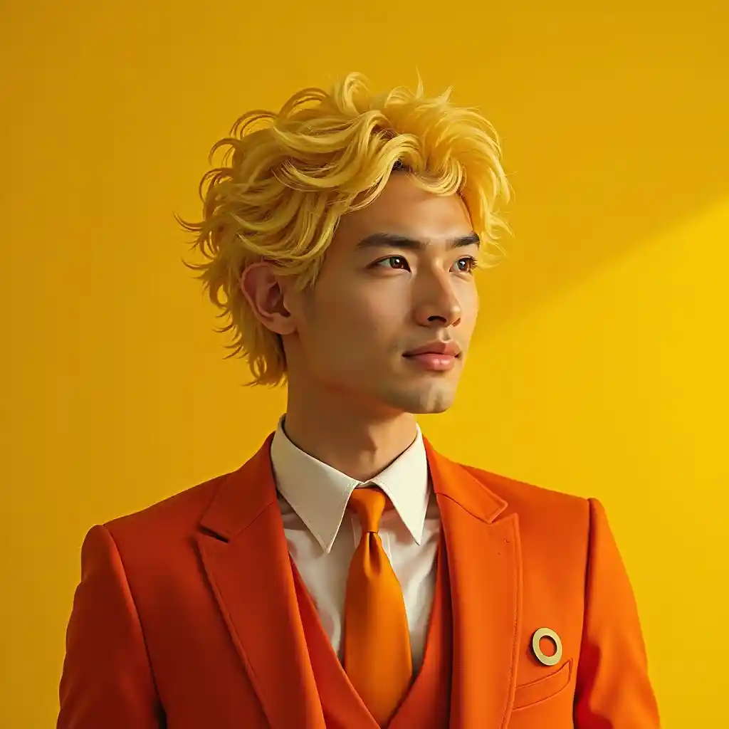 BrynnMann mit gelbem Haar, Highlight-Rot strahlt Anzug aus