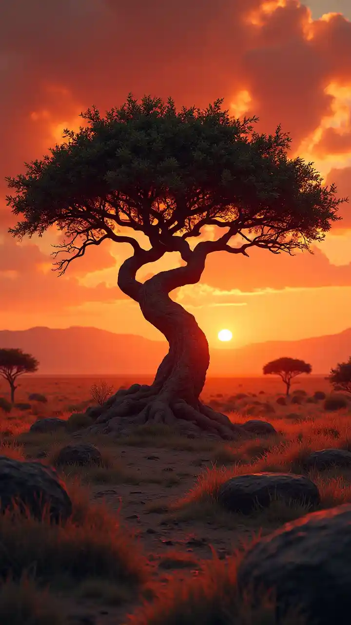 Drachenblut, Savannen, Sonnenuntergänge, Tiefenschärfe, unglaublich hohe Details, Steine, Felsen, Berge am Horizont