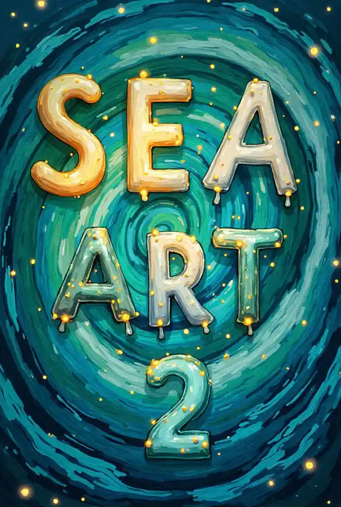 ElizabethDer Schriftzug "SEA ART2" ist in einem Luftballon auf ein Whirlpool-Muster aus Blau, Gelbgrün, Grün, Weiß und Hellblau geschrieben und mit einem leuchtenden SE verziert