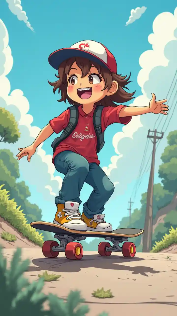 BentleyAnime-Skateboarder-Figur rollt und lacht