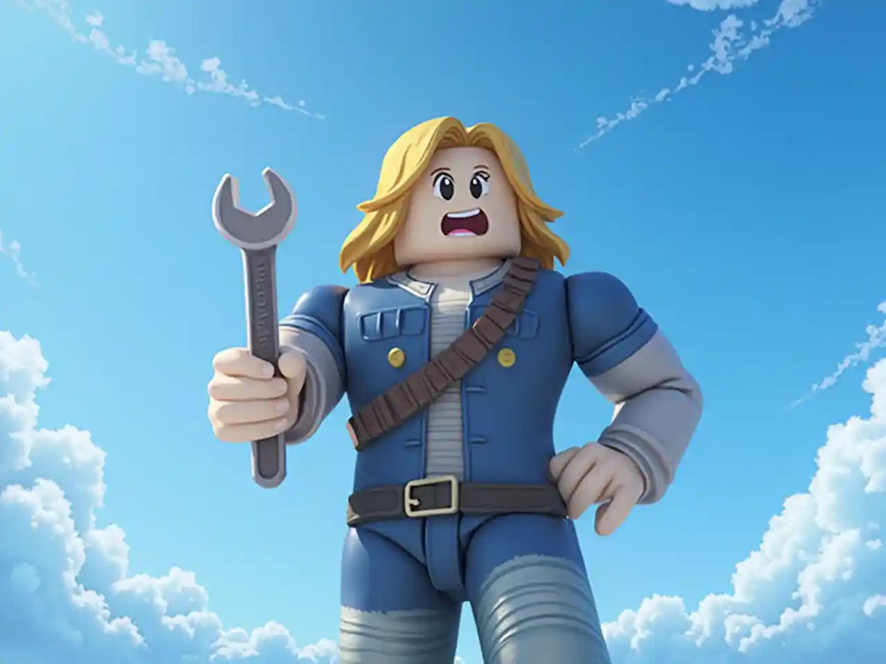 ZoeErstellen Sie für mich einen Avatar des blauen Himmels und des roblox-Charakters, der einen Schraubenschlüssel hält, mit dem Titel DreamShift