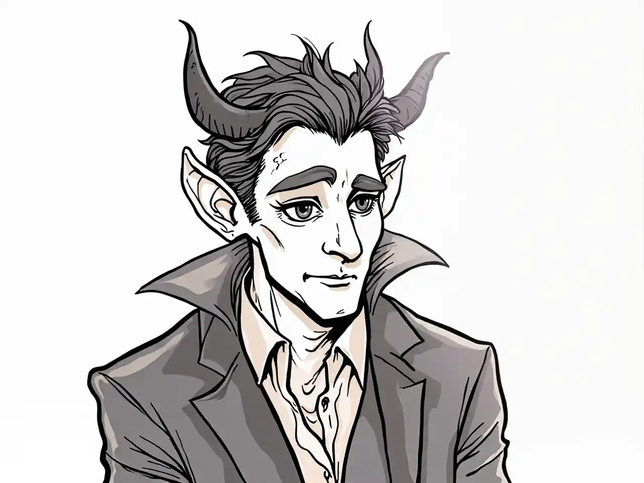 AsherDer sanfte Teufel, auf weißem Grund minimalistische Linienkunst Vektor-Comic-Stil der Kunst