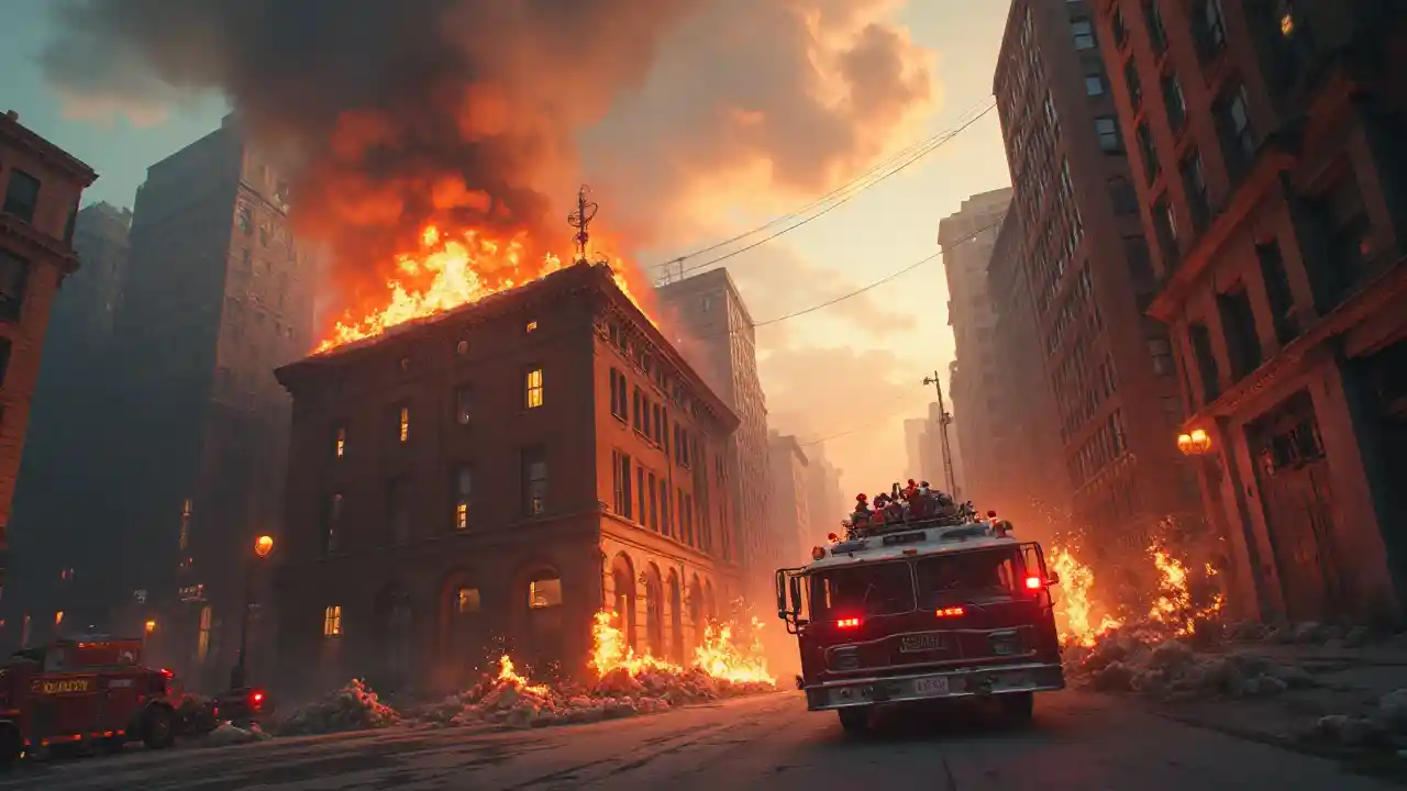 Mutige Superhelden retten die Stadt vor der Feuerkatastrophe