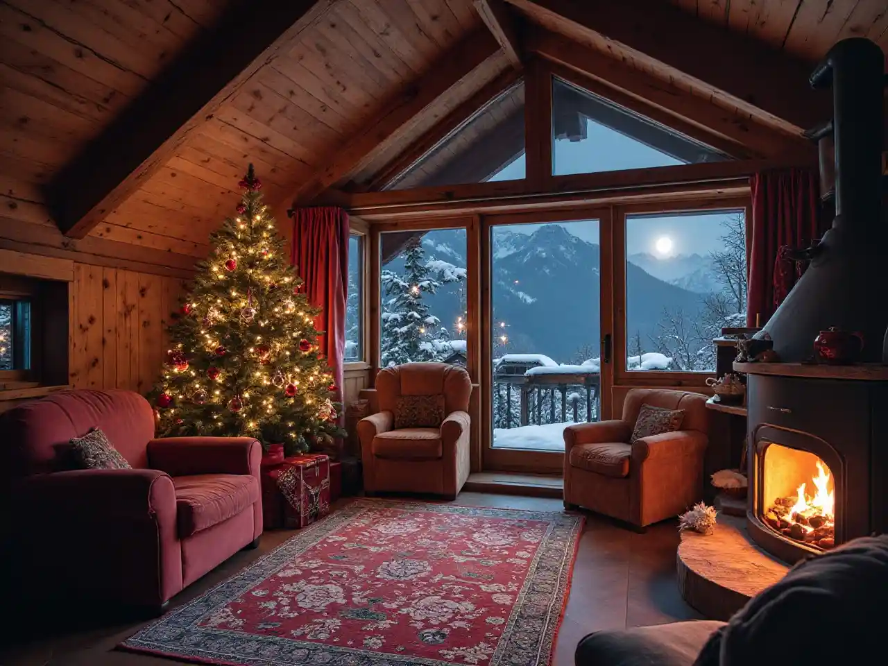 Gemütliches Schweizer Chalet mit Weihnachtsdeko und Kamin