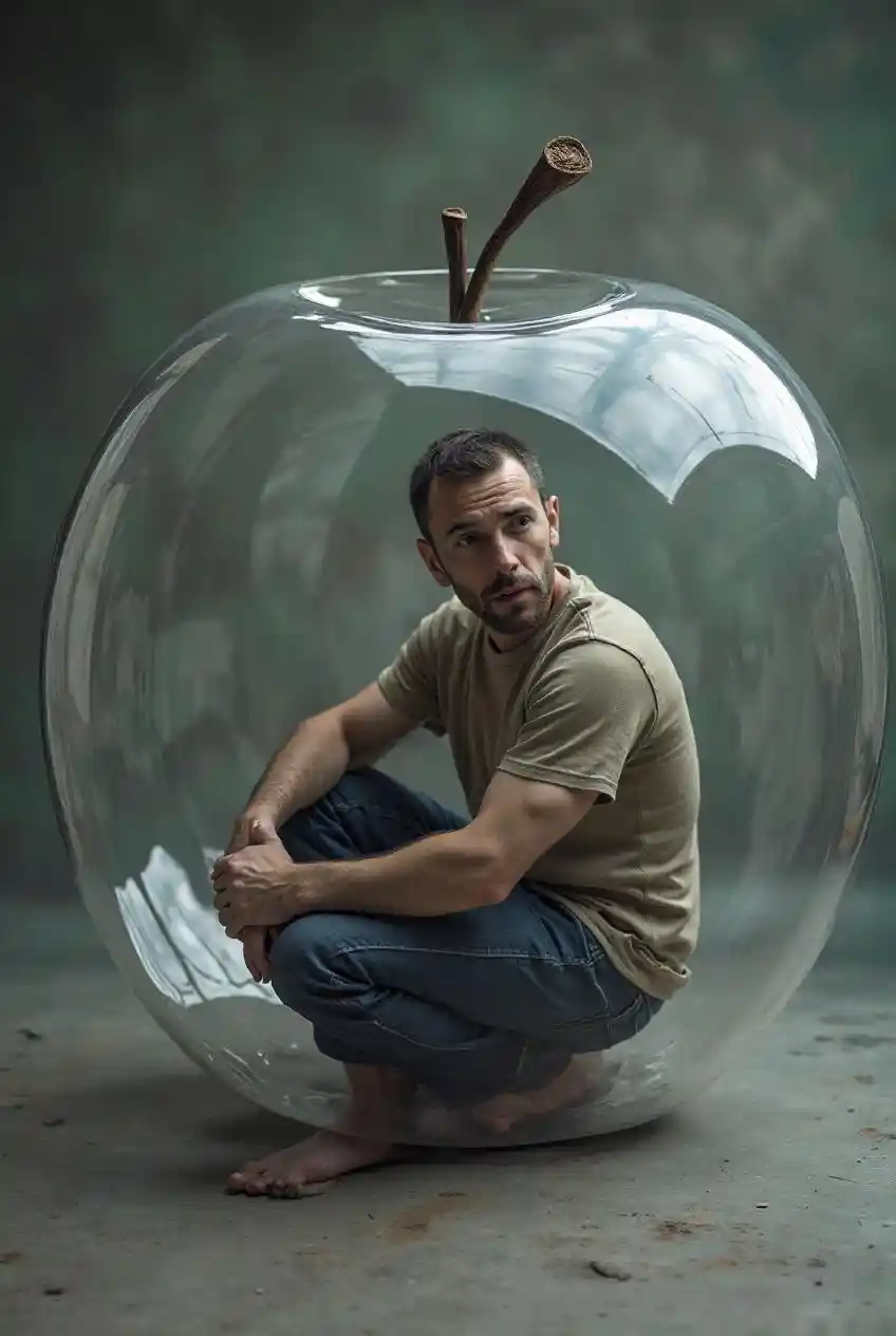 Die Person, die ich gab, hatte einen Bildhinweis in einem apfelähnlichen Plastikpaket, aber das Paket war viel größer als das Paket, also wickelte ein rundes Paket die Person darin ein, aber die Person saß und das Plastikpaket, das ihn umhüllte, war viel größer, und der Mann versuchte zu atmen